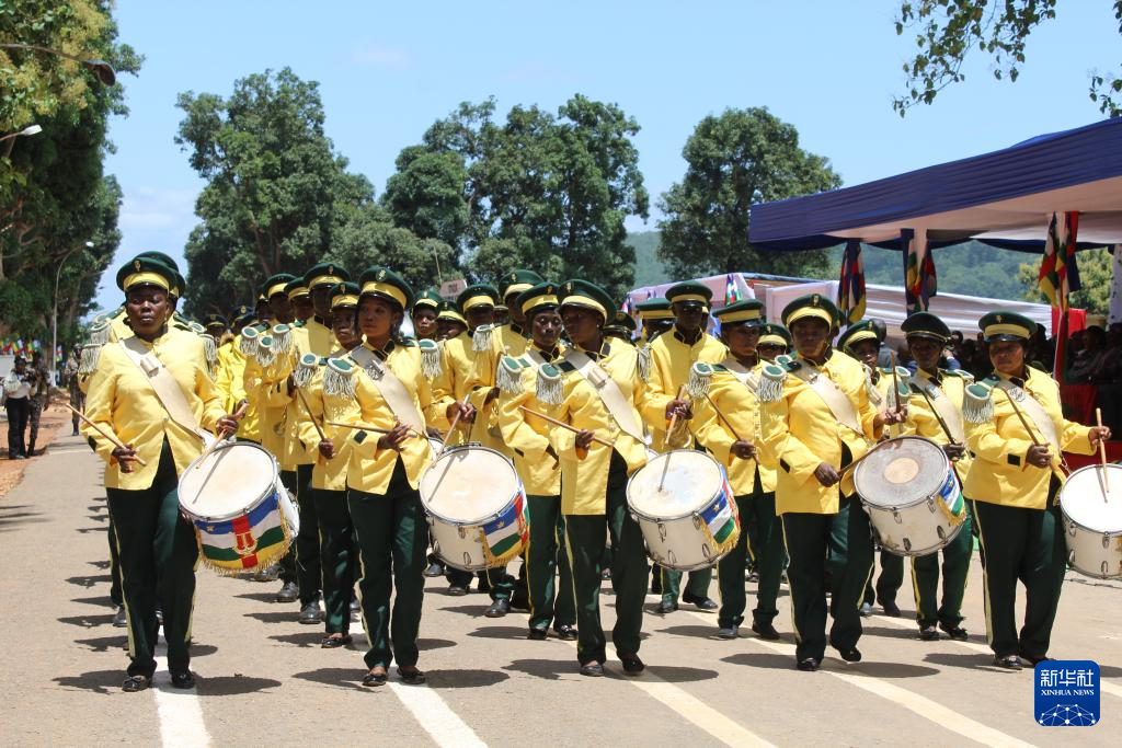 8月13日,在中非共和国首都班吉,军乐团参加阅兵式。