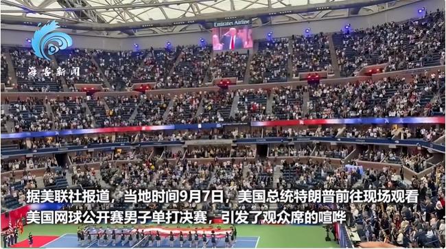 当地时间9月7日,美国总统特朗普前往现场观看美国网球公开赛男子单打决赛,引发观众席喧哗。由于加强了安保措施,排队时间延长,尽管主办方推迟了开赛时间,仍有不少普通观众错过了比赛开场。国歌演奏期间,特朗普从套房中现身,起立敬礼,并出现在大屏幕上,观众席上响起巨大嘘声。