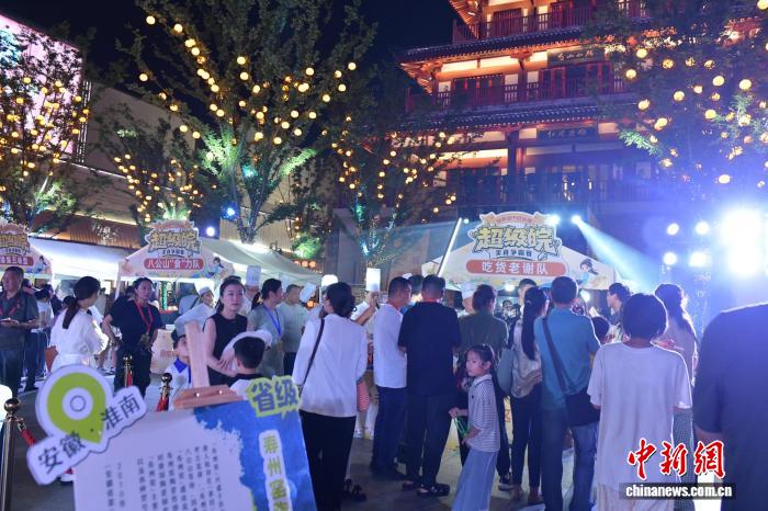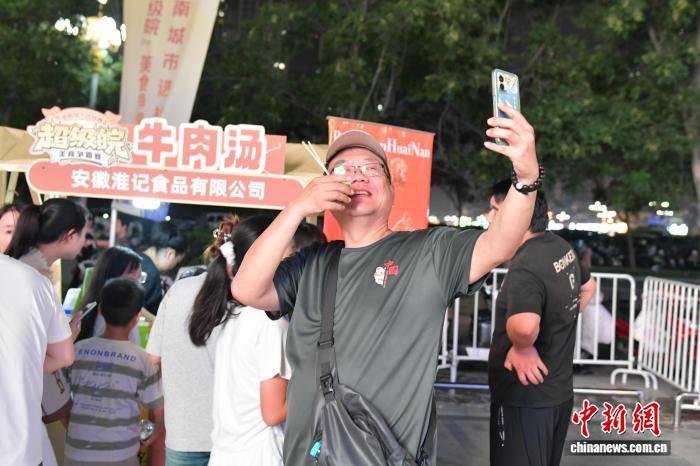 图为民众与美食合影。中新社记者 储玮玮 摄