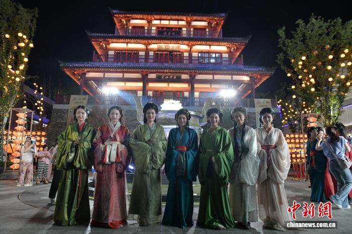 图为身穿古装的游客在街区拍照。中新社记者 储玮玮 摄