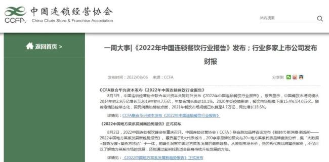 2022年8月,中国连锁经营协会联合华兴资本共同对外发布《2022年中国连锁餐饮行业报告》。