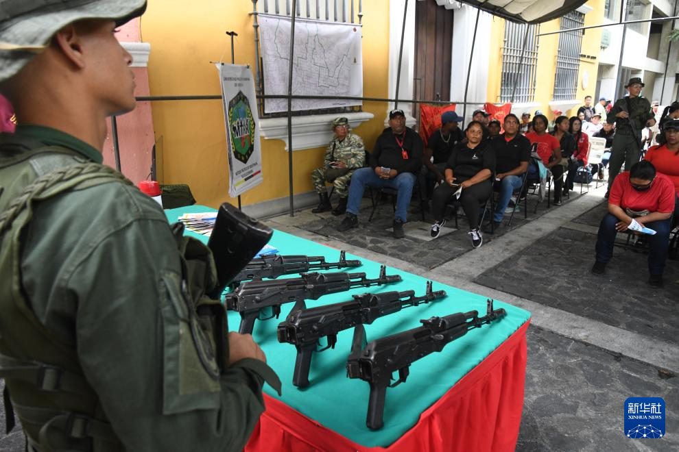 9月20日,在委内瑞拉首都加拉加斯,民兵和社区居民参加军事培训。新华社发(马科斯·萨尔加多摄)
