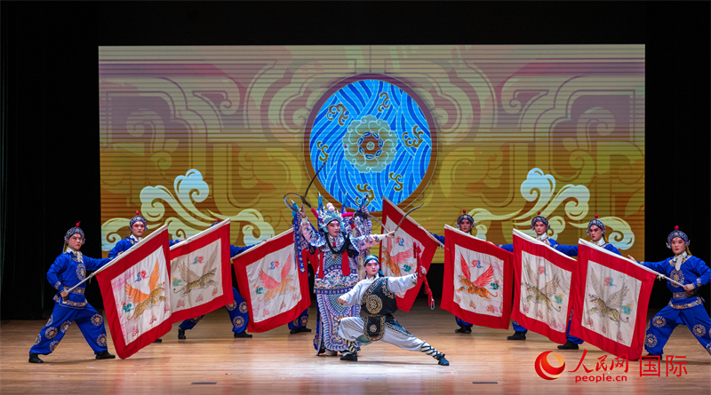 浙江婺剧团艺术家表演《吕布试马》。人民网记者 谢佳君摄