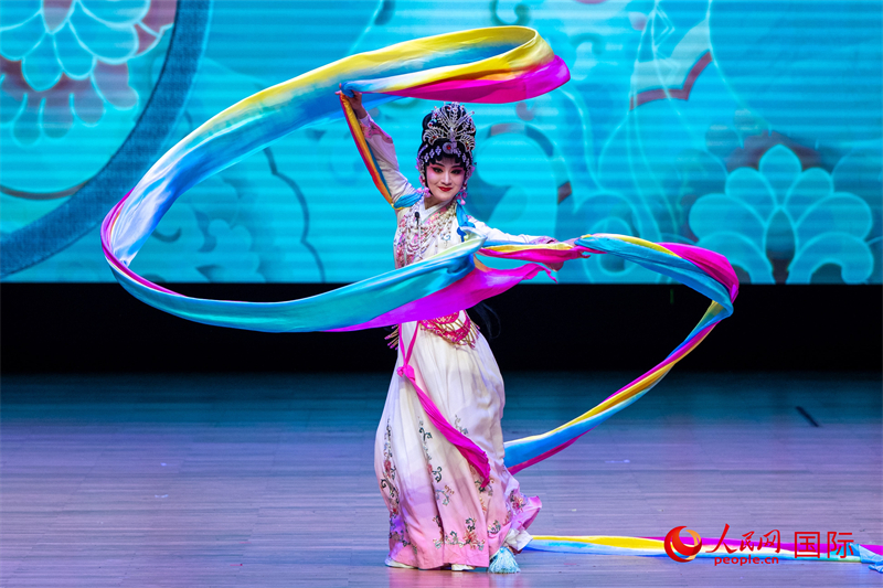 浙江婺剧团艺术家表演《天女散花》。人民网记者 谢佳君摄