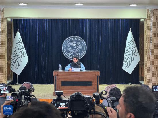 10月12日,阿富汗政府发言人扎比乌拉·穆贾希德在首都喀布尔举行的记者会上发言。新华社发(塞夫拉赫曼·萨菲摄)
