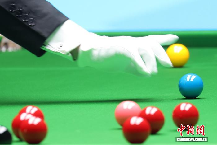 11月2日,2025世界斯诺克巡回赛国际锦标赛在南京开赛,丁俊晖、赵心童、奥沙利文等高手亮相赛场。图为裁判摆球。中新社记者 泱波 摄
