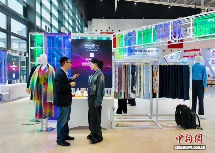 11月5日,武汉纺织大学基于纤维材料的交叉学科研究团队研发的热湿舒适智能调节聚酯纤维服装,目前已经投入市场。中新社记者 张斌 摄