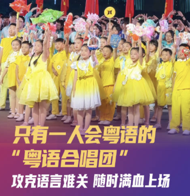39人粤语合唱团竟只有1人会粤语,演唱粤语儿歌的合唱团,居然只有一人会粤语?10后苦练粤语只为全运会闭幕式献唱,深圳蛇口学校五彩石合唱团的小团员们刻苦练习,攻克语言难关,将在十五运会闭幕式上奉献精彩的粤语表演。39人粤语合唱团竟只有1人会粤语
