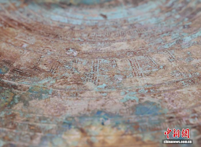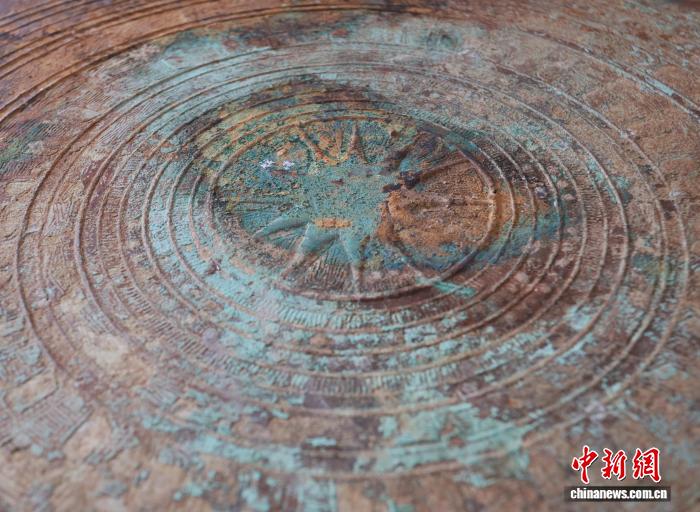图为铜鼓中心的太阳纹。汤晓逵 摄