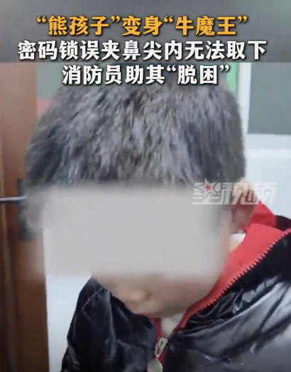 小孩用密码“锁”鼻 消防员:还玩吗?近日,湖南怀化。“熊孩子”变身牛魔王,男童将密码锁夹鼻尖内无法取下,消防员一分钟助其“脱困”。提醒家长朋友们:儿童安全无小事,家长需要时刻绷紧安全弦,小朋友们也要注意远离危险,安全第一!