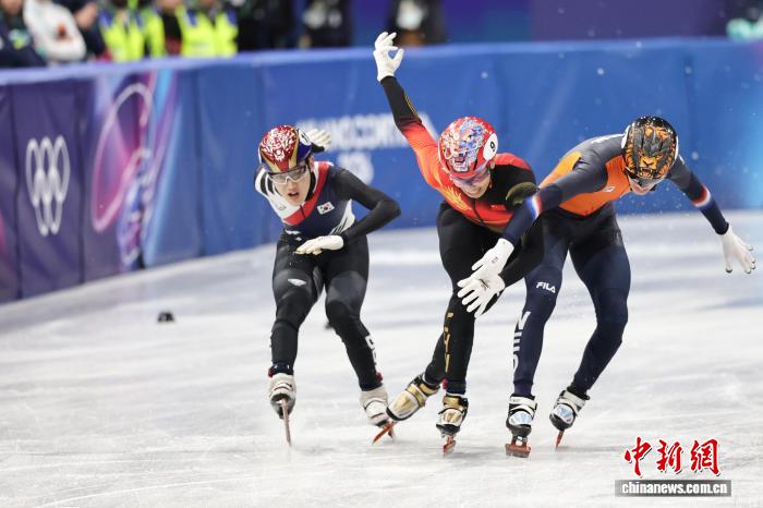 当地时间2月12日,在意大利米兰进行的米兰冬奥会短道速滑男子1000米A组决赛中,中国选手孙龙(中)成绩为1分24秒565,获得银牌。荷兰选手延斯·范特·沃特(右)夺冠,成绩为1分24秒537。韩国选手林钟彦(左)以1分24秒611获得铜牌。中新社记者 蒋启明 摄