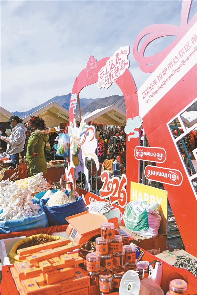 晨光初现,山间的雾气还未完全消散,拉萨市达孜区全民健身体育场却已人声鼎沸,以“云上达孜 马跃新春”为主题的2026年拉萨市达孜区第四届年货节暨便民生活节在此拉开帷幕。