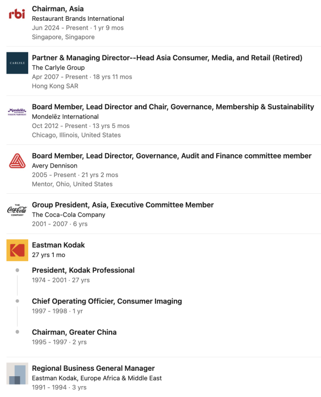 除了麦当劳,Patrick Siewert与中国乃至亚洲市场还有更多交集。根据Patrick Siewert的领英页面,他在亚洲市场的任职经历,最早可以追溯到上世纪90年代,尤其在消费领域经验丰富。