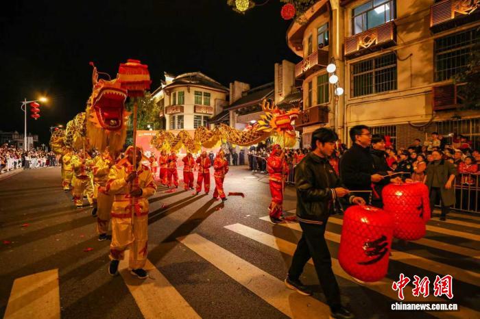 当晚7时,华灯初上,元宵巡游正式启动。巡游队伍身着色彩艳丽的传统服饰,在震耳欲聋的锣鼓声中,沿着城区主干道浩浩荡荡前行。全程2.1公里的路线上,精心设置了4个定点表演区,让市民游客能够近距离、沉浸式地感受客家传统民俗的独特韵味。