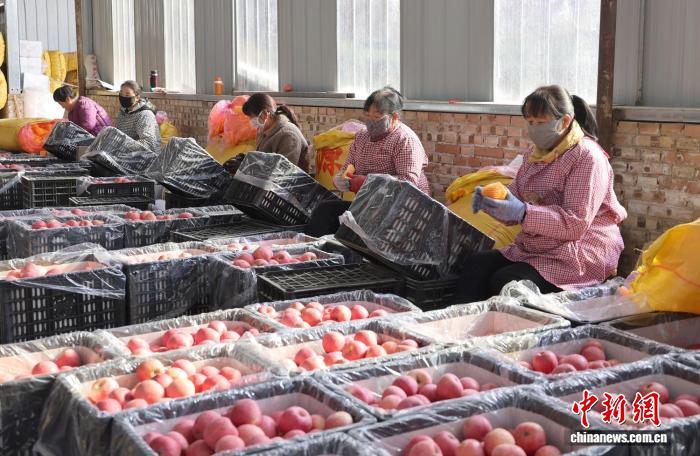 中新网兰州3月11日电 (盘小美)3月中旬的黄土高原,春寒料峭。清晨,甘肃省庆阳市西峰区温泉镇米堡村庆阳汇果塬果蔬有限责任公司的果库里,几十名工人有条不紊地开展苹果分拣、打包、装运等作业,一箱箱苹果已经码放整齐,等待装车发货。