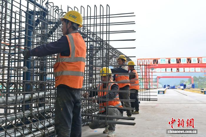 图为工人正在绑扎钢筋。张旭 摄