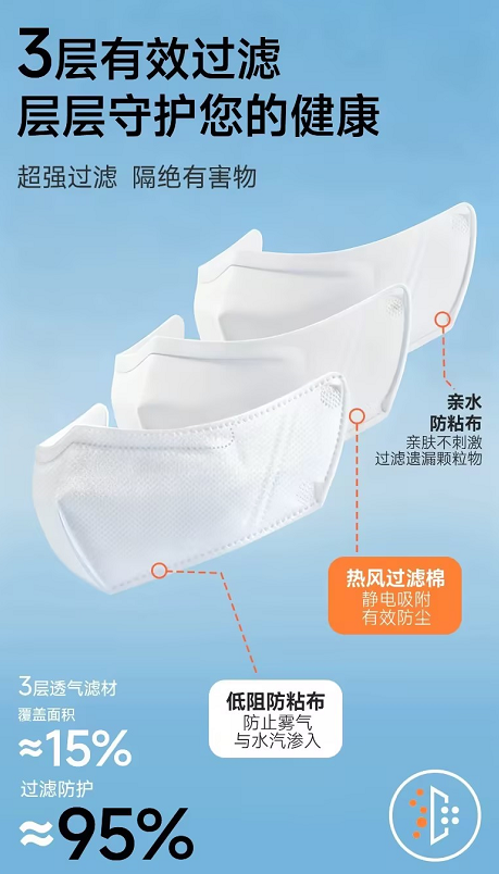 “戴着口罩总感觉喘不上来气。”“戴上眼镜全是雾,摘了眼镜看不清。”“说话隔着口罩声音发闷,连喝口水还要反复摘戴,真麻烦。”随着大众呼吸健康防护意识的持续提升,日常防护早已从特殊时期的应急需求,转向了常态化、精细化的生活刚需。然而,传统口罩全口鼻包裹的设计,也带来了闷热、起雾、交流不便、久戴勒耳等一系列新烦恼。这些看似不起眼的小折磨,足以让很多人选择“算了”,久而久之便演变成通勤路上摘一会儿、办公室里松一下、户外活动索性就不戴了。