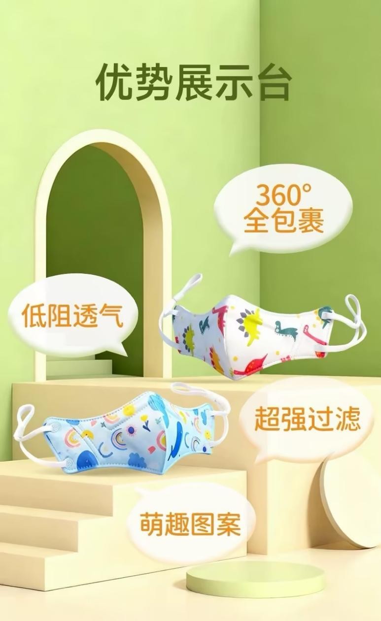 当然,让家长们头疼的,还有孩子“不肯戴”的问题。迪福伦的儿童专属呼吸鼻罩,采用适配儿童“娃娃脸”的自研立体剪裁,搭配三层低阻过滤结构,牢牢守住儿童的鼻部防线。低阻透气的滤材与立体剪裁,让孩子佩戴时呼吸顺畅不闷热,可调节耳挂绳与可调鼻夹能自由适配不同年龄段孩子的脸型,不勒脸、不滑落,精密焊接的耳带牢固不易断,配合恐龙、彩虹等萌趣图案,让鼻罩成为每一个孩子的“战斗面具”。