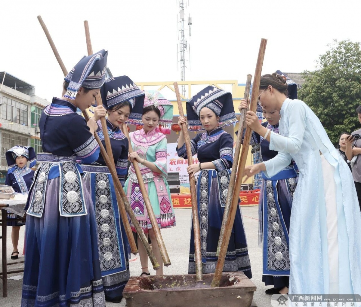 中越姐妹一起舂糍粑。冯美秀 摄