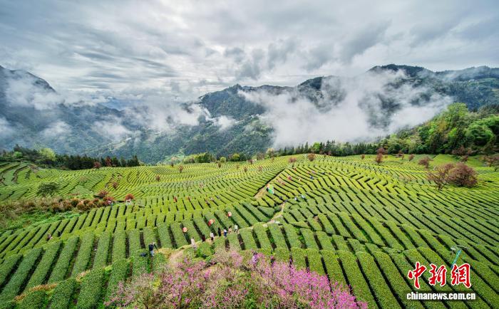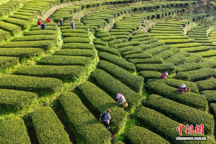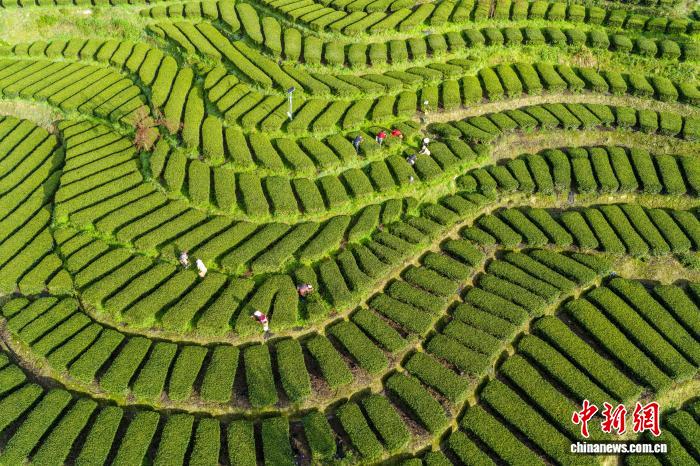 图为恩施花枝山茶园美如画。王关政 摄图为茶农在“画”中采春茶。王关政 摄图为茶园春色绘就乡村画卷。王关政 摄图为茶农在田间采摘茶叶。王关政 摄图为茶农在茶园采茶。王关政 摄图为花枝山村的茶叶基地。王关政 摄