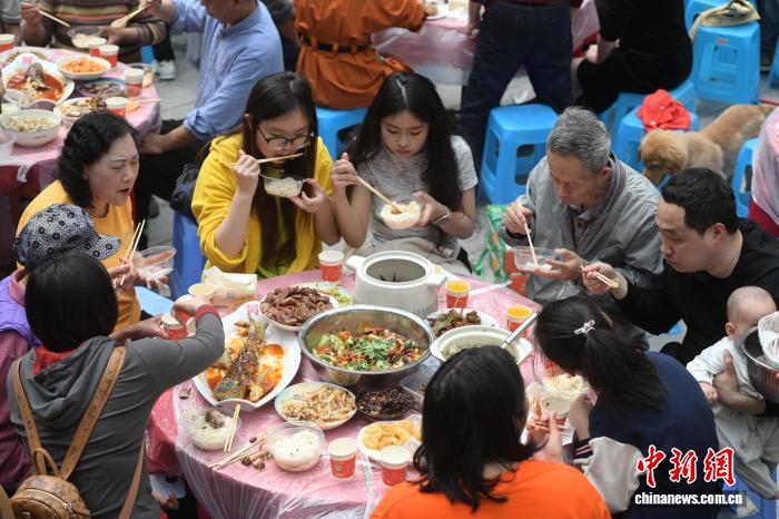 图为百家宴现场,居民边品尝美食边看文艺演出。陈鑫 摄图为百家宴现场,居民围坐品尝美食。陈鑫 摄图为百家宴现场一个“四世同堂”家庭品尝美食。陈鑫 摄图为居民现场烹饪美食。陈鑫 摄图为居民品尝美食。陈鑫 摄
