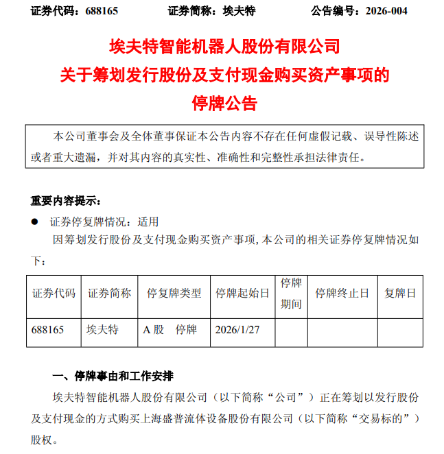 在自身盈利不佳情况下,埃夫特仍计划动用巨量资金开展收购。1月26日,埃夫特公告,公司拟通过发行股份及支付现金的方式购买上海盛普流体设备股份有限公司100%股份。