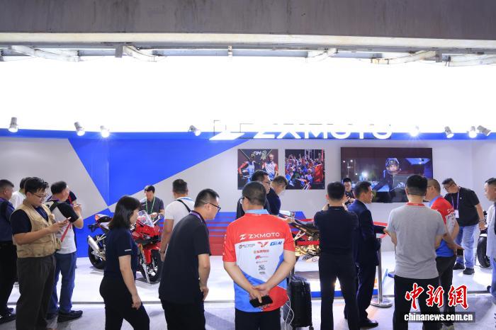 图为广交会首日,张雪机车展台吸引众多客商。重庆市商务委 供图
