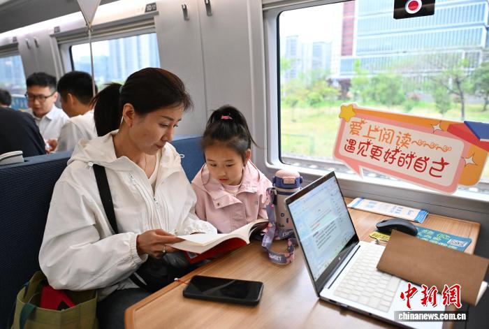 图为旅客在列车上的“移动读书角”阅读书籍。中新社记者 韩苏原 摄