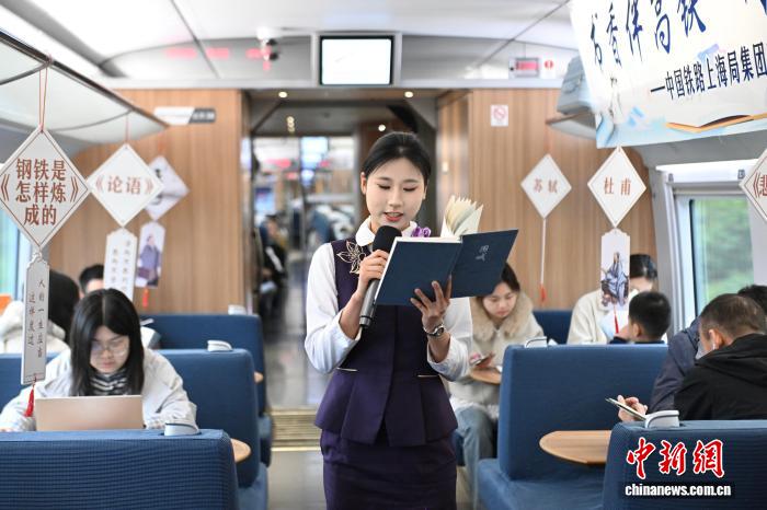 图为乘务员在分享书籍内容。中新社记者 韩苏原 摄