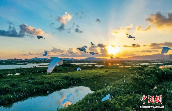 珠海红旗镇三板水乡百鸟归巢。广东省生态环境厅 供图
