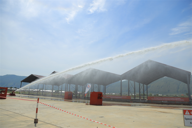 本次演练紧扣翠鸟油田投产攻坚的关键节点,全程依托中国海油井控中心为油田配套建设的井控基地开展。该基地是中国海油在非洲建设的首个井控应急保障基地,配备6大类、34台套应急装备,为演练有序推进提供硬件支撑。演练中,中乌专职救援队员分工明确、配合默契,高效完成消防管线铺设、火源围控、应急清障等科目,操作规范、衔接顺畅,充分体现中国海油在乌干达油气应急队伍的本地化建设成果。