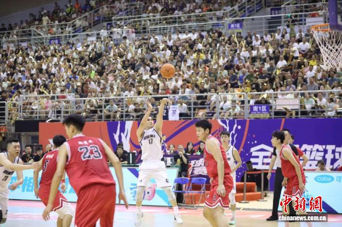 图为湘钢集团队球员投篮。 周阳 摄 图为观众在现场加油观赛。 周阳 摄 图为冠军争夺战现场。 周阳 摄