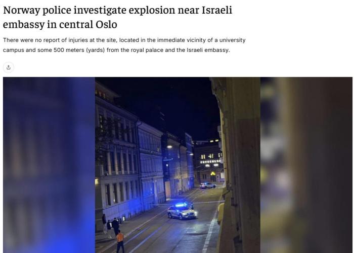 中新网9月24日电 据以色列《耶路撒冷邮报》报道,当地时间23日,挪威首都奥斯陆市中心以色列大使馆附近发生爆炸,一名嫌疑人被捕。
