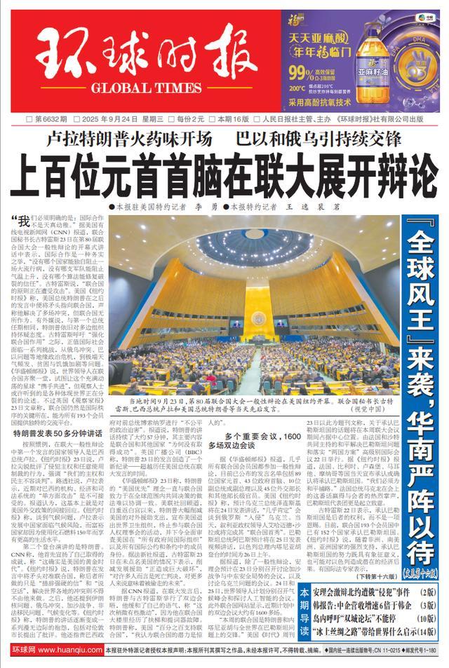 联合国秘书长古特雷斯在第80届联合国大会一般性辩论的开幕式上强调,国际合作是一种务实之举。他指出,没有哪个国家能独自阻止一场大流行病,没有哪支军队能阻止气温上升,没有哪个算法能修复破裂的信任。他还提到,联合国的原则正在遭受攻击