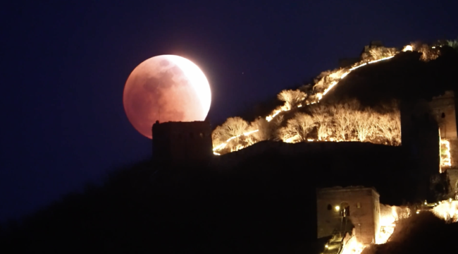 3月3日,元宵节与月全食相遇。红月亮从长城上升起的景象令人震撼。通过视频可以感受到这一壮观时刻。愿大家平安幸福,岁岁安康