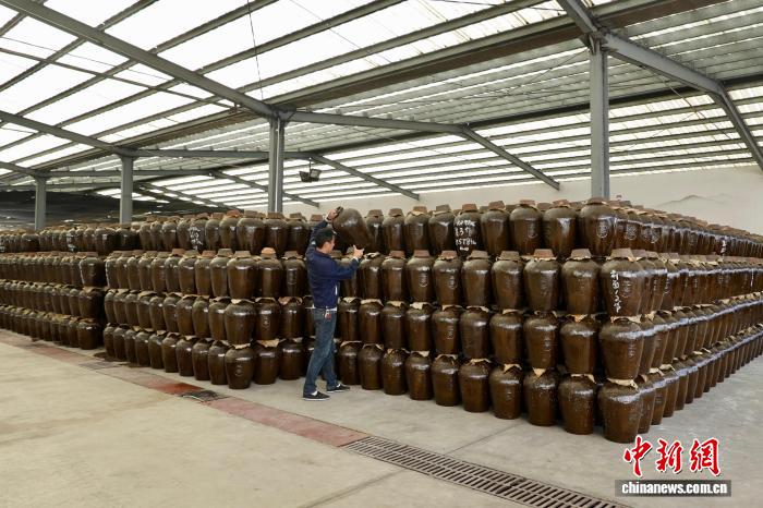 11月21日,酿酒师傅整理冬酿所需的酒坛。中新社记者 刘子琳 摄 11月21日,酿酒师傅搬运酒坛。中新社记者 刘子琳 摄