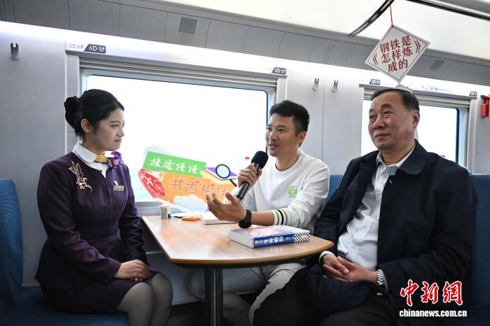 图为一位旅客在分享读书心得。中新社记者 韩苏原 摄 图为旅客在列车上的“移动读书角”阅读书籍。中新社记者 韩苏原 摄