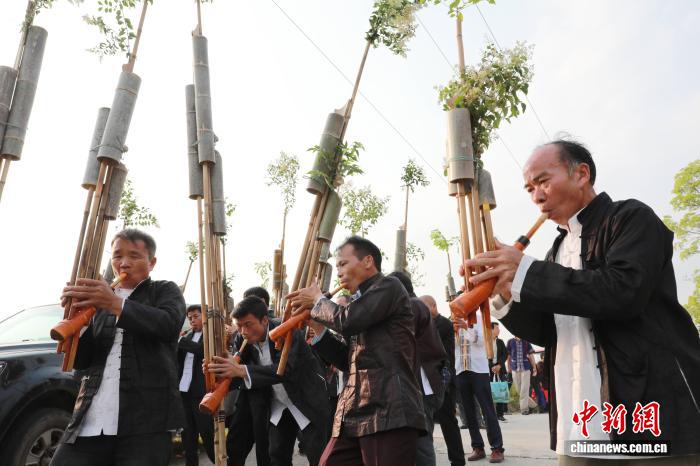 图为民众在吹芦笙。龚普康 摄 图为活动现场。龚普康 摄 图为芦笙踩堂表演。龚普康 摄