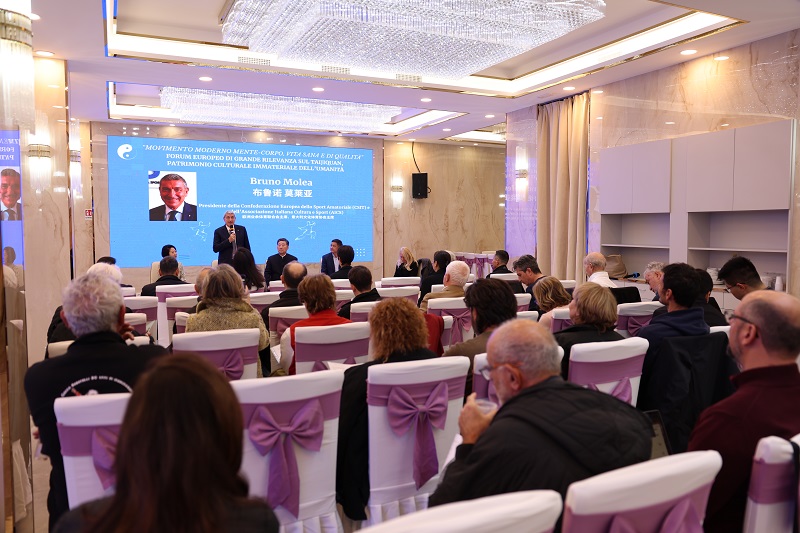 活动现场。主办方供图人民网罗马11月22日电(记者谢亚宏)太极拳人类非物质文化遗产欧洲高端论坛20日在意大利那不勒斯举办。本次论坛由意大利土河中国文化体育协会协同意大利文化体育协会坎帕尼亚大区委员会组