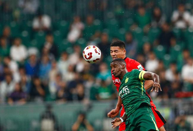 9月21日,在北京工人体育场举行的2025赛季中国足球超级联赛第25轮比赛中,北京国安队主场以2比3不敌上海海港队。比赛过程中,北京国安队球员法比奥和上海海港队球员蒋光太在场上争顶