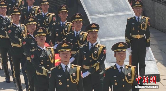 中新网沈阳4月23日电(姜月恒 禹瑞斋)23日上午,第十三批在韩中国人民志愿军烈士遗骸安葬仪式在沈阳抗美援朝烈士陵园举行。广场中央,寓意英雄如山、祈愿和平的主题雕塑巍然伫立。环形烈士英名墙下,摆满黄白菊花,寄