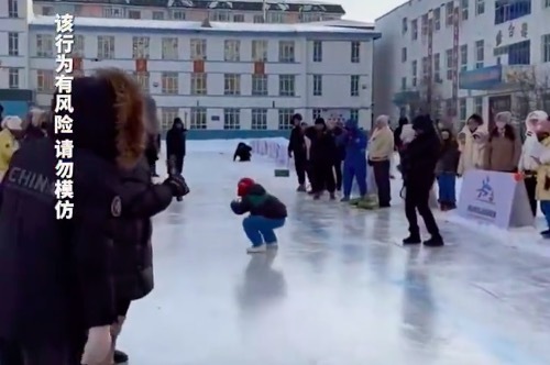 东北校园"打出溜滑"比赛中男孩滑出25.7米,喜提粘豆包一袋反差感拉满。网友:接地气的比赛接地气的姿势接地气的奖励。...