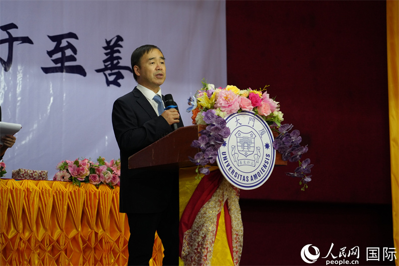 人民网清莱9月26日电(记者简承渊)当地时间25日,厦门大学海外教育学院在泰国清莱府的鹏博冠教学点举行2025届毕业典礼及学位授予仪式,厦门大学校长张宗益出席仪式。厦门大学校长张宗益致辞。人民网记者简