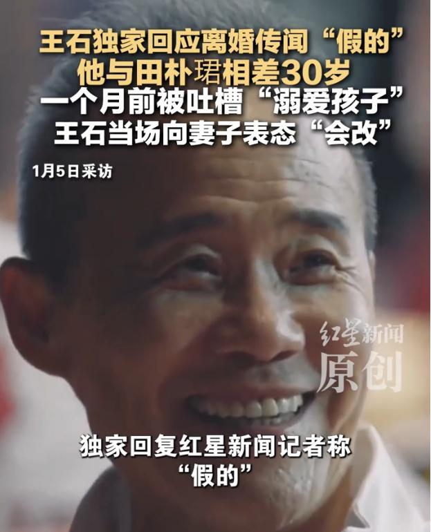 万科集团创始人王石针对网传“王石与田朴珺离婚”的说法,在1月5日晚回复红星新闻记者称这一消息是假的。几小时前,田朴珺也对记者做出了同样的回应,夫妻二人的说法完全一致。这对相差30岁的夫妻自2012年恋情曝光以来一直备受关注